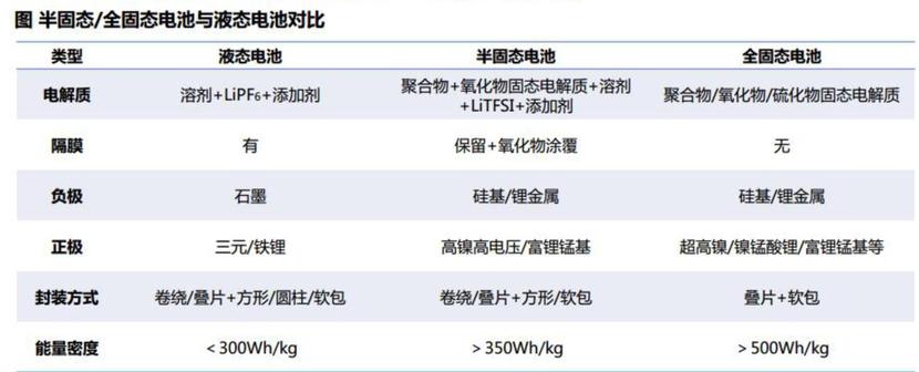 图/液态-半固态-固态电池对比 来源/互联网 新能源观截图