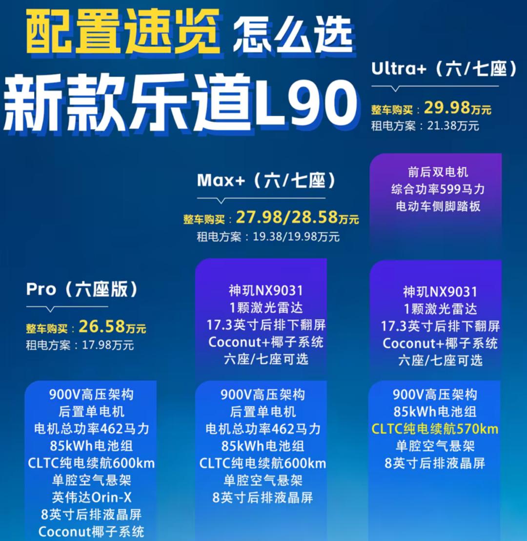 最近大家比较关注的一款大三排SUV就是2026款乐道L90,26.58万元起,如果采用BaaS租电池方案,只用17.98万元起就能拿下。