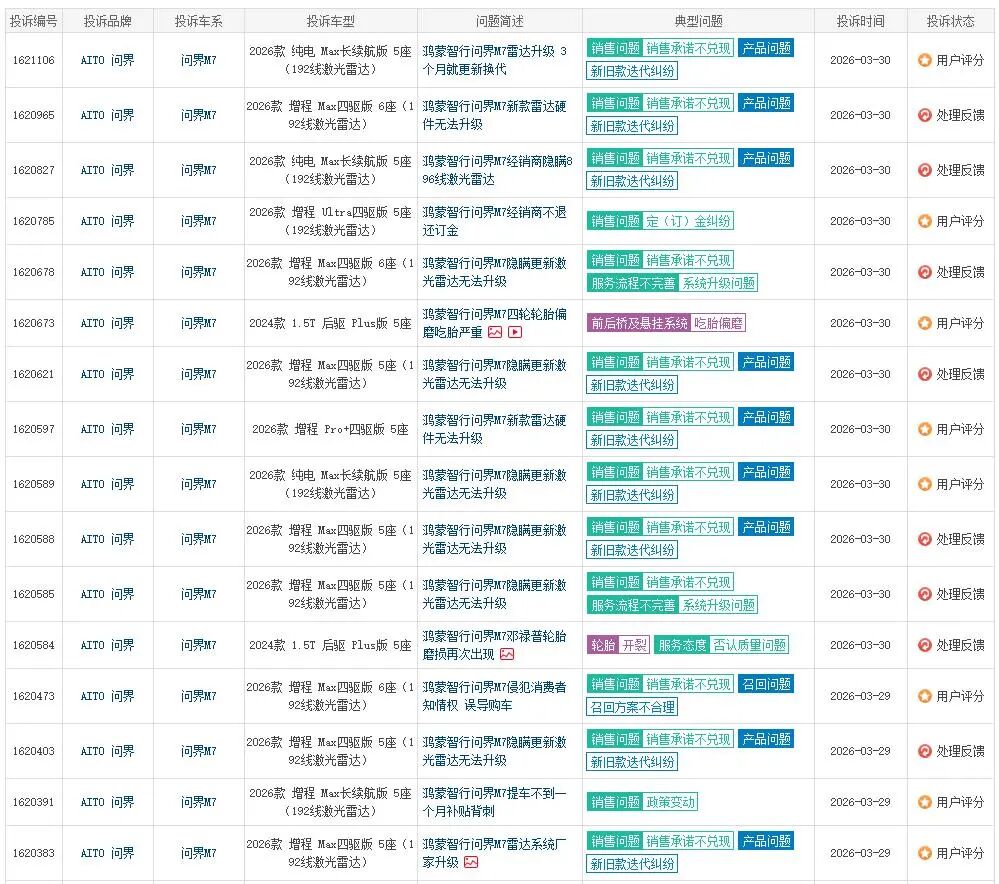 图/新问界M7投诉情况 来源/车质网 新能源观截图