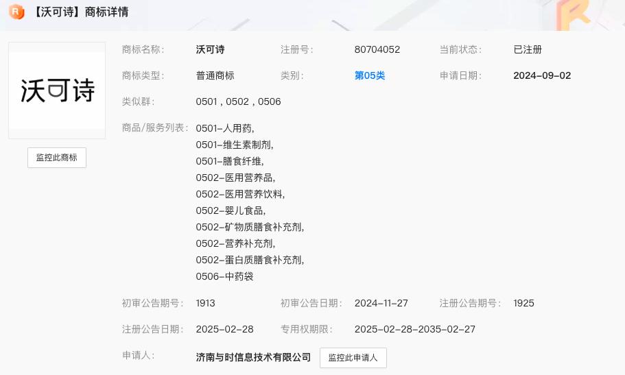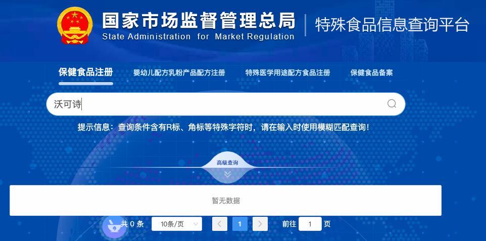 此外,“沃可诗”虽然完成了商标注册,但在国家市场监督管理总局网站上,却查不到其保健食品注册或备案。中国消费者协会秘书长王振宇曾在采访中表示:“保健食品依法注册/备案,才具有明确的法律定位,可以声称明确的保健功能,其他食品不得声称保健功能。”