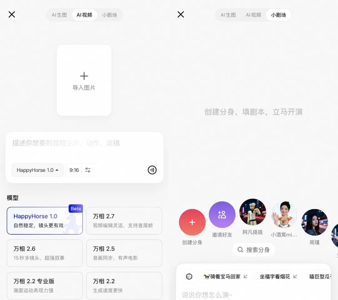 最直接的受益者是千问App。视频能力的显著提升将大幅提升其娱乐体验。千问App预告近期将上线“测一测”视频功能:用户完成一套测试后,系统判断其在某个短剧宇宙中对应的角色,HappyHorse 1.0随即生成该用户“出演”对应角色的短剧片段。