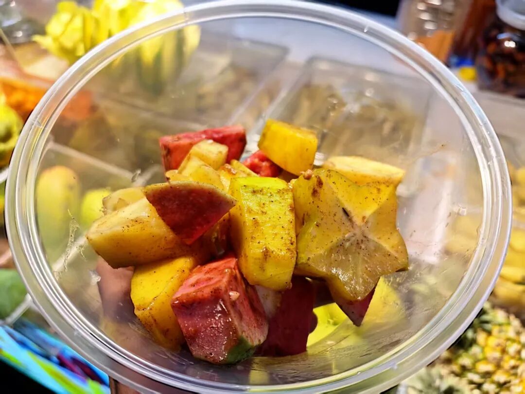 走在广西街头,酸嘢摊随处可见。青芒、芭乐、杨桃、菠萝等水果,用纯净水、醋、盐、糖调制的酸水腌制,或搭配辣椒盐、甘草盐、酸梅粉等撒料,酸脆爽口、开胃解腻,是本地人的美食记忆。