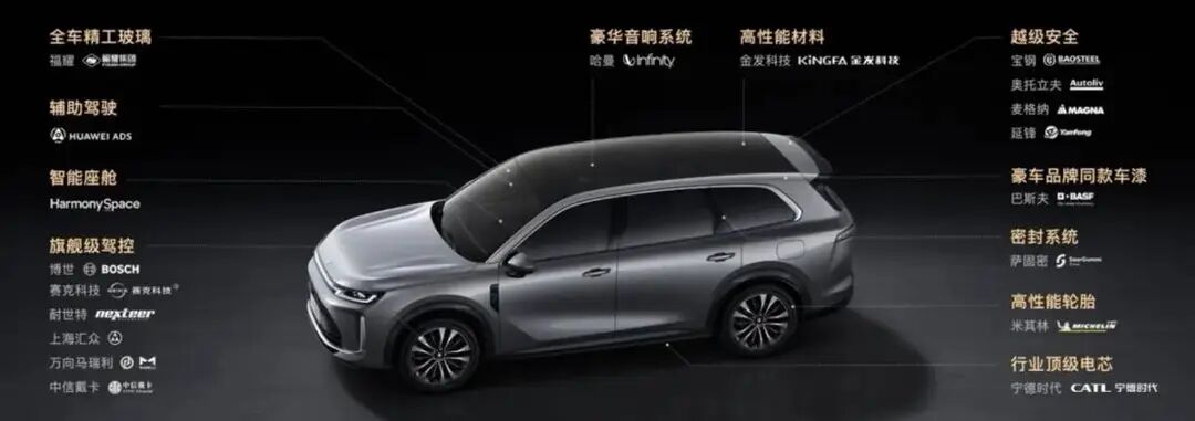 在这个庞大的技术生态里,各家车企交出的产品不可避免地走向了同质化。相同的百万像素投影大灯,同样规格的 896 线双光路激光雷达,再加上同一套鸿蒙座舱和华为乾崑 ADS。