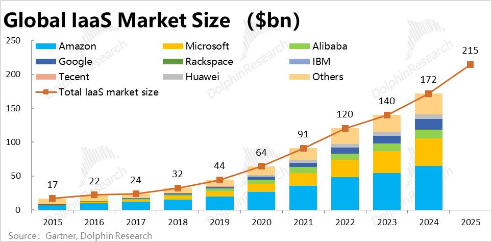 该如何理解$1500亿的IaaS业务收入规模到底有多大?从两个角度看: