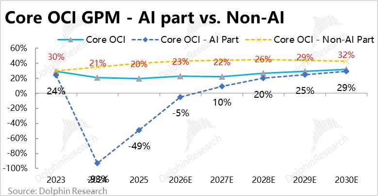 抓住主要矛盾--对总毛利率的影响,主要是取决于低毛利率的Core OCI营收占比快速走高,带来的结构性变化;以及AI部分业务的稳态毛利率是多少,这两个主要因素。