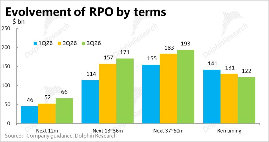 (需注意RPO具体都来自哪些业务公司无官方披露,但参考一些投行观点其至少90%是来自OCI板块,并且越远期的RPO中来自OCI的比重应当约高。因此出于分析方便,就将超过12月以上的RPO都视为来自OCI板块、尤其是Core OCI IaaS类业务)