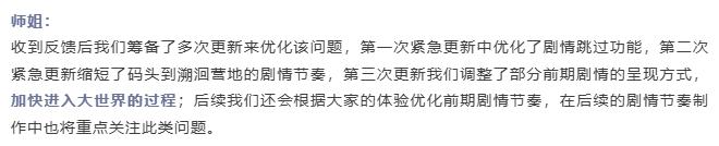 这样的结果甚至有可能被提前预判。项目组在游戏流程的一开始就在「叠甲」表示道,「这个世界刚刚开始,尚不完美……」。像这样开局就摊牌的产品并不多见,《王者世界》也的确在上线首周就回应了玩家对于跳过剧情、加入小地图等反馈。