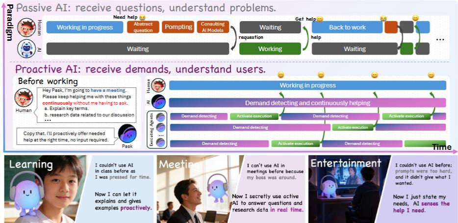 【导读】让AI像助手一样主动帮助,才是我们心中AGI的样子。主动智能体的概念已经被多次提出,但都很难做到可以真正在生活中落地。现有的工作都还停留在概念层面,无法解决复杂世界中所要求的实时性、深度、和记忆等问题。 南洋理工大学谢之非团队提出Pask,使用「底层小模型流式意图检测」+ 「上层Agents执行」架构,实现首个能够做到实时、有深度、基于个人全局记忆自进化的主动智能体。