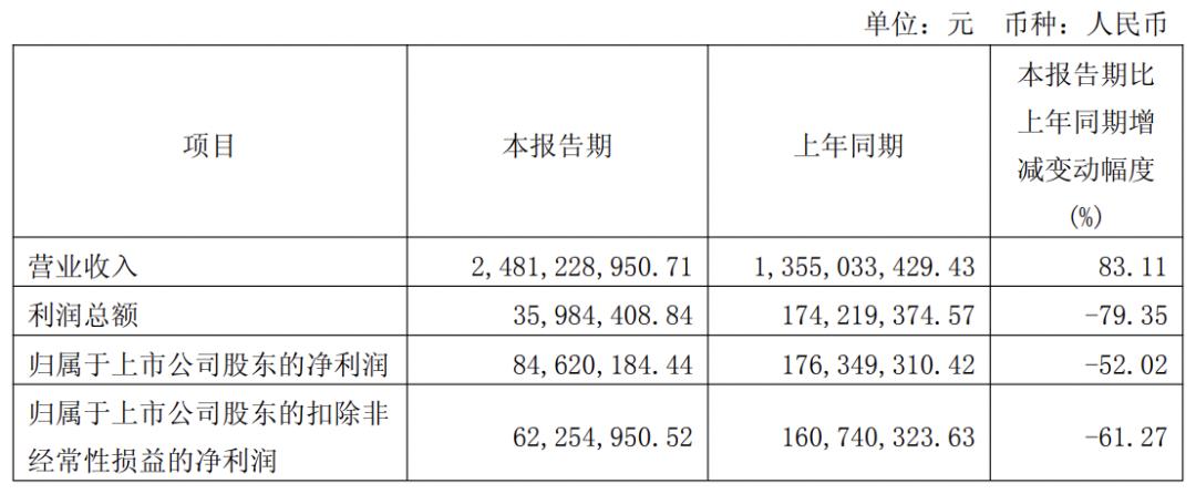 进入2026年,这一趋势进一步加剧。一季度公司营收24.81亿元,同比猛增83.11%,延续爆发式增长,而归母净利润仅8462.02万元,同比大幅下滑52.02%,处于腰斩态势;扣非净利润6225.50万元,同比下降61.27%,利润端压力持续凸显。